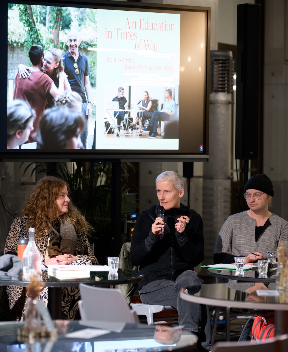Thank you so much, to the rectorate of Bezalel Academy of Fine Arts, specifically to Adi Stern, Barak Pelman and Liat Brix-Etgar, for coming to Vienna and discussing with us in person. Your work on the Guidelines for Free Speech and Creative Freedom in Wartime spreads courage, hope, and confidence. We are keenly aware that each and every point of the Guidelines and their creation involved a challenging, even hurtful process. What impresses us so much is that the guidelines were developed from the entire organisation of a university across ethnicities, religious beliefs, genders and ages, across and involving all hierarchical levels. Such work requires a lot of listening and discussing and is therefore a great role model and inspiration.